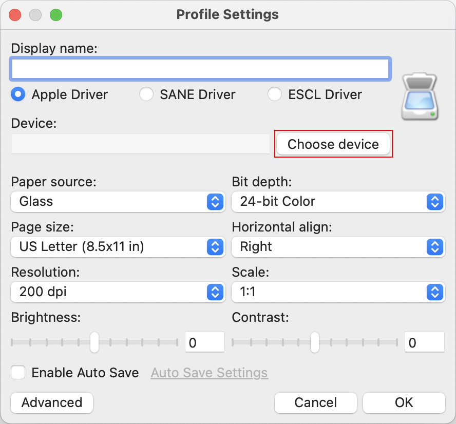 Click the "Choose device" button to select your scanner.
