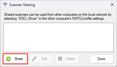 On the computer you want to scan from, create a NAPS2 profile with the "ESCL Driver" selected and choose the shared scanner.