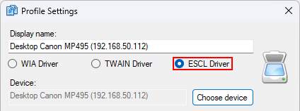Or, if the client is using Windows and the server is using Linux, you can use SANE over the network if you install SANEWinDS (v1.2+) on Windows. This doesn't use ESCL - instead, SANEWinDS provides a TWAIN device on the client that will connect to the SANE server.