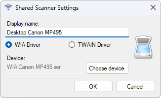 Select the scanning device that you want to share. You can also change the name that other computers will see.